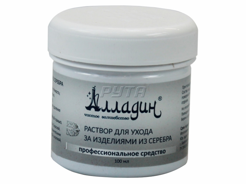 Купите Раствор для ухода за изделиями из серебра АЛЛАДИН (100 мл) в наличии по цене 165.50 руб с доставкой по от производителя Алладин с гарантией в интернет-магазине для ювелиров Рута.